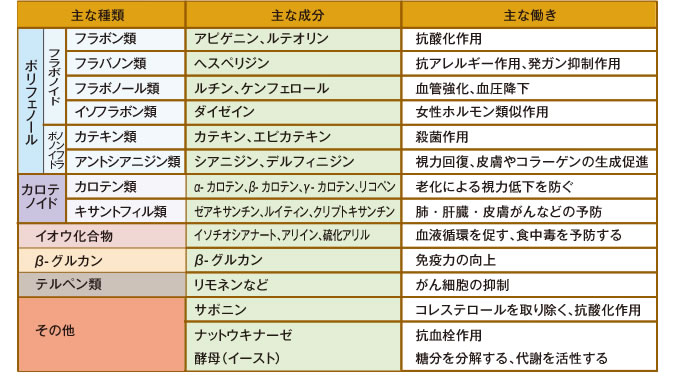 植物は紫外線の害から身を守るために色素やアクなどの成分を作り出しています。そうした成分は、人にとっても“生体調整機能”として有効で、活性酸素を無害化し、老化を防いだり、がんの抑制を行ったりします。