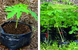 背丈が50センチを超え、根が地面に張ったころに成長の遅い木があれば間引きます。木の間隔を揃えて、中耕土寄せ作業を行います。