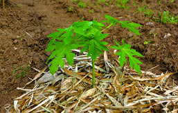 根もとに乾燥防止の葉を敷きます。