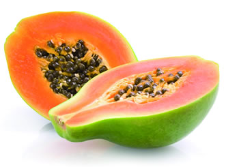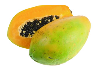 洋梨のような形をしたカポホ・ソロは糖度が高く、色は緑黄色で、熟すに従って黄色が強くなります。果肉は濃い黄色で、ピーチメロンのような爽やかな味が自慢です。輸入パパイヤの多くはこの「ソロ種」です。黄色い果肉はねっとりとした食感で甘みがあり、酸味はほとんどありません。熟すにつれて果皮が黄色く変化し、栄養分のカロテンも増えます。一年中安定して輸入されているので、いつでもスーパーなどで購入できるでしょう。