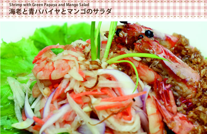 パパイヤの料理 海老と青パパイヤとマンゴのサラダ