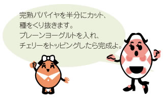 | ①のヨーグルトの上にカットしたフルーツを入れます。 | |